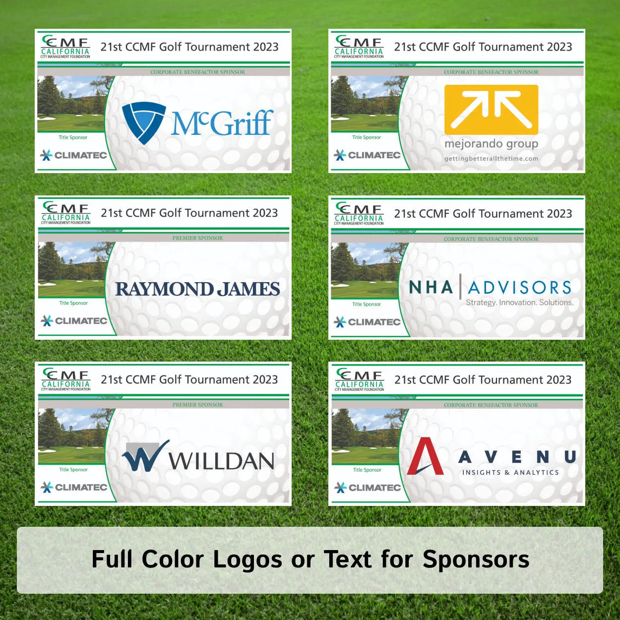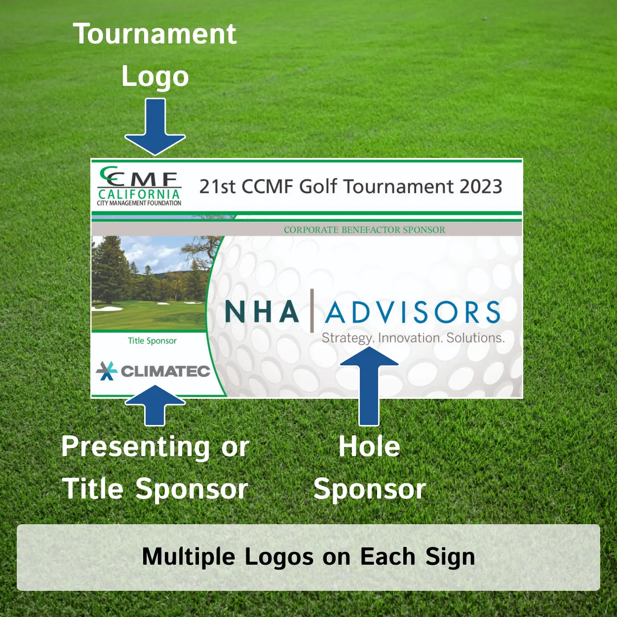 Yes. You can put as many logos on your Tee and Hole Signs as you want. This can include a tournament name and logo, a charity logo, multiple sponsor logos, and more.